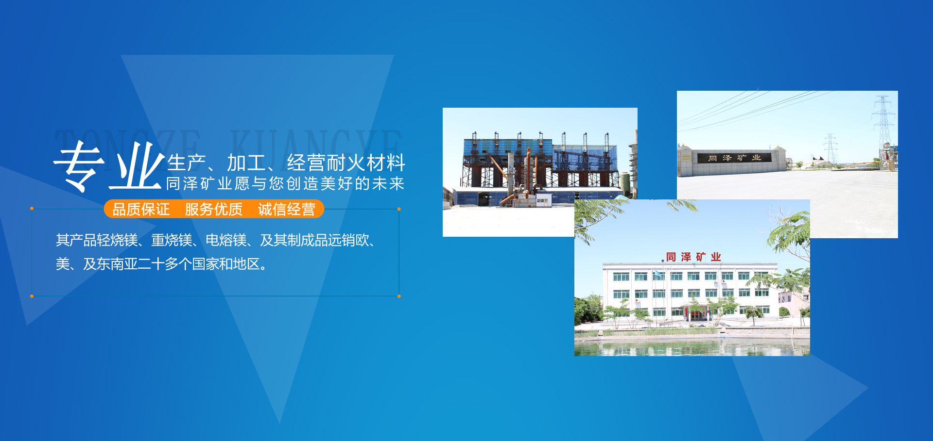 大石橋市同澤礦業(yè)有限公司,是以生產、加工、經營各種耐火材料為主的綜合性經濟實體。其產品輕燒鎂、重燒鎂、電熔鎂、及其制成品遠銷歐、美、及東南亞二十多個國家和地區(qū)。